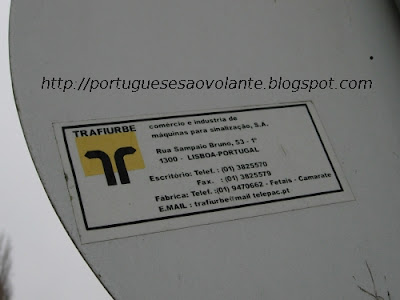 O autor deste sinal é uma empresa chamada Trafiurbe, uma empresa de comércio e industria (sim, o indústria não tem direito a acento) de máquinas para sinalização, S.A. A Fábrica é em Fetais, Camarate, e o mail é trafiurbe@mail.telepac.pt. Os telefones têm indicativo de (01), o que sugere que a informação e a placa já têm muitos anos...